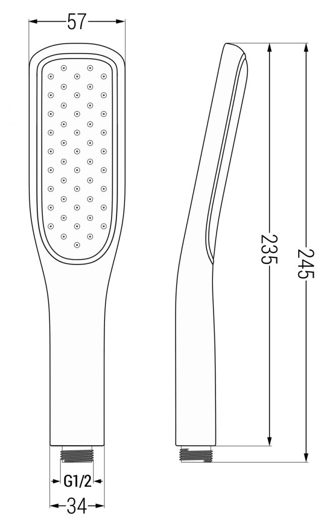 Plastová ručná sprcha od výrobcu MEXEN R-49 obdĺžnikového tvaru s jednou funkciou a štandardným pripojením G 1/2". Rozmery: výška: 235 mm, šírka hlavy: 57 mm. Vybavená je povrchovou úpravou v rôznych farebných variantoch.