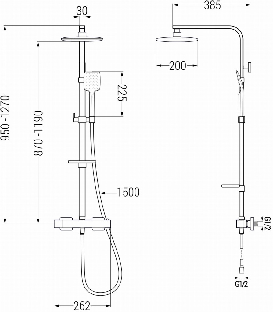 - pripojenie sprchy: G 3/4" (hore) a G 1/2" (dole)