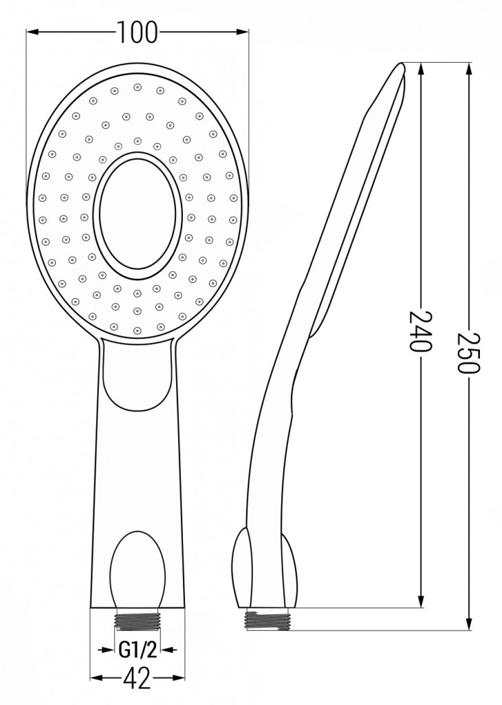 Plastová ručná sprcha od výrobcu MEXEN R-73, okrúhleho tvaru s jednou funkciou a štandardným pripojením G 1/2". Rozmery: výška: 240 mm, priemer hlavy: 100 mm. Vybavená je povrchovou úpravou v rôznych farebných variantoch.