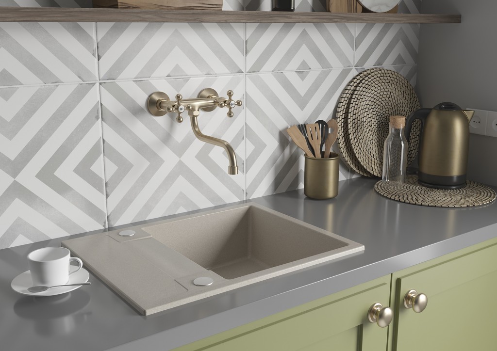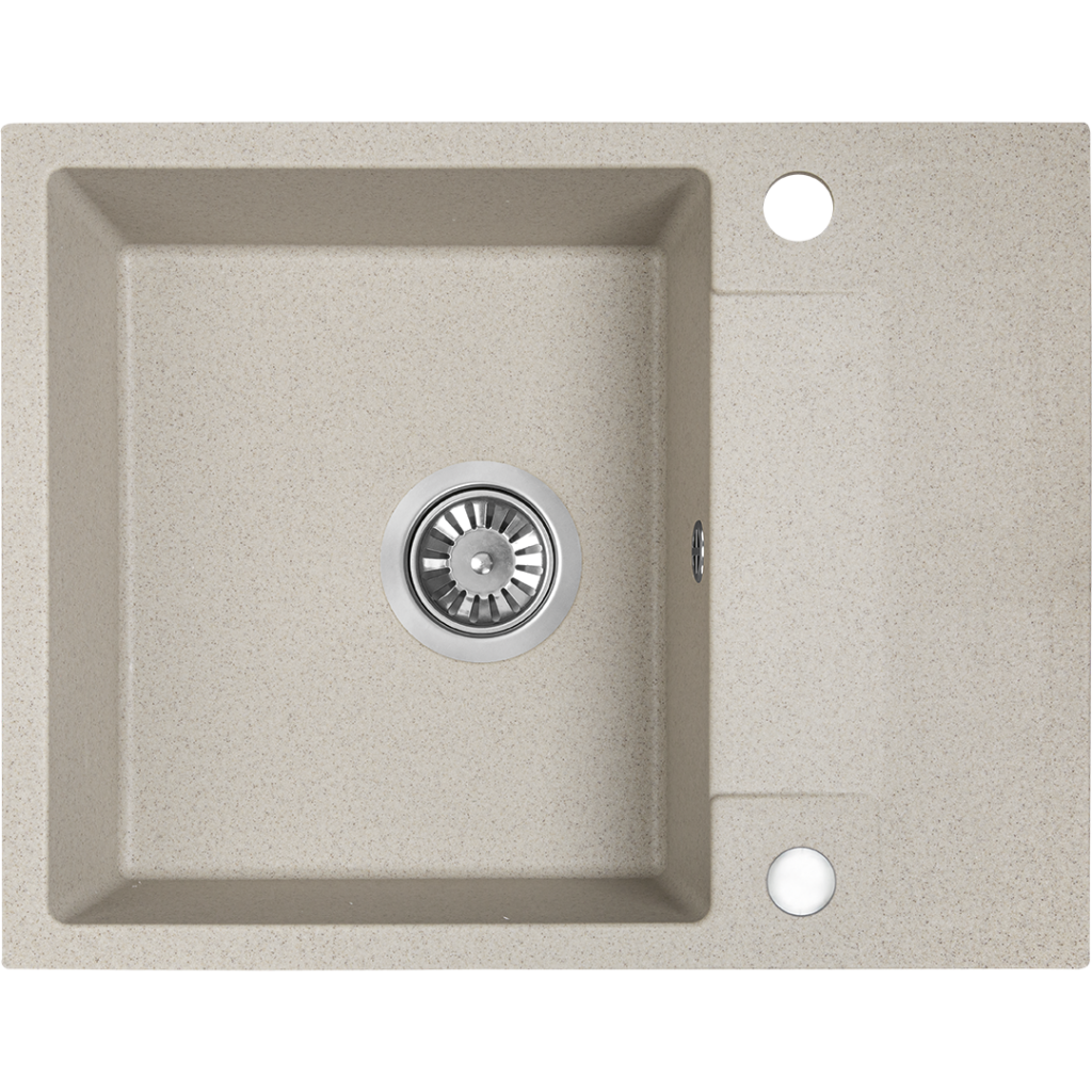 RAB – Béžový jednodrezový žulový drez s polovičným odtokom. Jednodrezy s polovičným odtokom sú určené do stredne veľkých a malých kuchýň alebo kuchynských kútov. Hodí sa aj ako ďalší drez vo väčšej kuchyni s dvoma umývadlami. Béžový jednodrezový žulový drez s polovičným odtokom zo série RAB je veľmi elegantný produkt s decentným dizajnom. Veľkoryso dimenzovaná misa s hĺbkou 16 cm zaisťuje pohodlné umývanie riadu a prípravu jedál. Zároveň výrazne neznižuje priestor pod drezom. Produkt je tiež vybavený samostatným kompaktným sifónom, ktorý vedie odtokovú rúrku až k stene. To umožňuje inštaláciu až dvoch zásuviek pod drez – jednej plytkej pre užitočné príslušenstvo a druhej hlbokej, vybavenej systémom triedenia odpadu. Parametre zapusteného drezu RAB s polovičným odtokom: Jednodrezový drez RAB s polovičným odtokom je klasický obdĺžnikový drez. Jeho celkové rozmery sú 560 x 440 x 175 mm. Väčšinu tohto priestoru zaberá veľká misa so šírkou 34 cm a malý odkvapkávač so zaujímavým reliéfnym vzorom. Drez RAB má otvor pre batériu a je obojstranný. To umožňuje jeho inštaláciu s odkvapkávačom vpravo alebo vľavo, čím sa dokonale integruje do kuchynského usporiadania. Tento drez je zabudovaný do pracovnej dosky. Súčasťou dodávky je montážna šablóna, ktorá zjednodušuje vyrezanie príslušného otvoru. Súčasťou dodávky sú montážne klipy zaisťujúce bezpečnú inštaláciu. Rozmery drezu umožňujú inštaláciu na kuchynskú skrinku so šírkou 50 cm. Súčasťou dodávky je sifón s pripojením na umývačku riadu. Drez je vybavený funkčnou manuálnou zátkou odpadu. Moderný jednodrezový drez RAB s polovičnou odtokovou nádržou. Žulové drezy ponúkajú odolnosť a skvelý vzhľad po mnoho rokov používania. Sú vyrobené z kompozitu prírodných žulových agregátov s prídavkom vysoko kvalitných živíc. Vďaka tomu sú drezy nielen odolné proti poškriabaniu a škvrnám, ale aj veľmi trvanlivé. Žulové drezy sa tiež veľmi ľahko čistia vďaka svojmu dokonale hladkému povrchu. Béžová farba drezu RAB sa hodí k mnohým interiérovým štýlom. Hodí sa ako do klasických, elegantných kuchýň, tak aj do kuchýň zariadených v modernom štýle. Tento model je k dispozícii aj v ďalších farbách – čiernej a šedej.