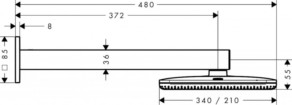 - veľkosť sprchovej hlavice: 214 x 343 mm
