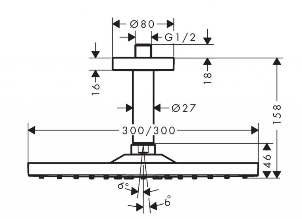 - guľový kĺb: nastaviteľný uhol horné sprchy