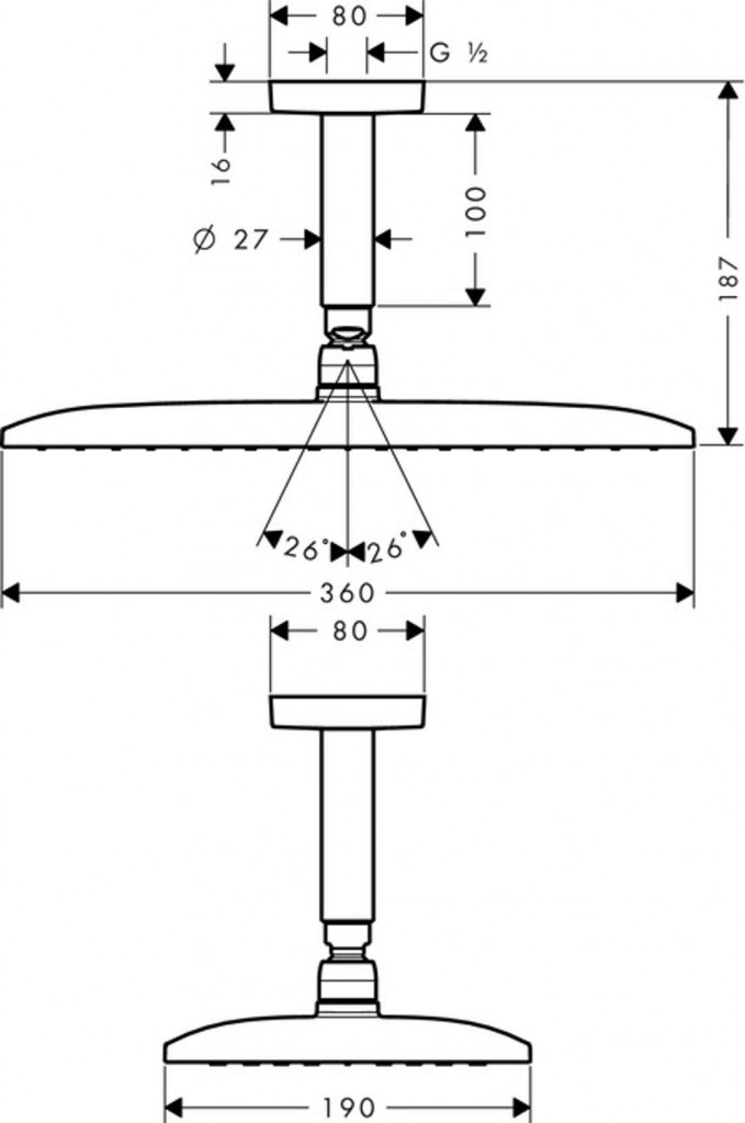 - veľkosť sprchovej hlavice: 360 x 190 mm