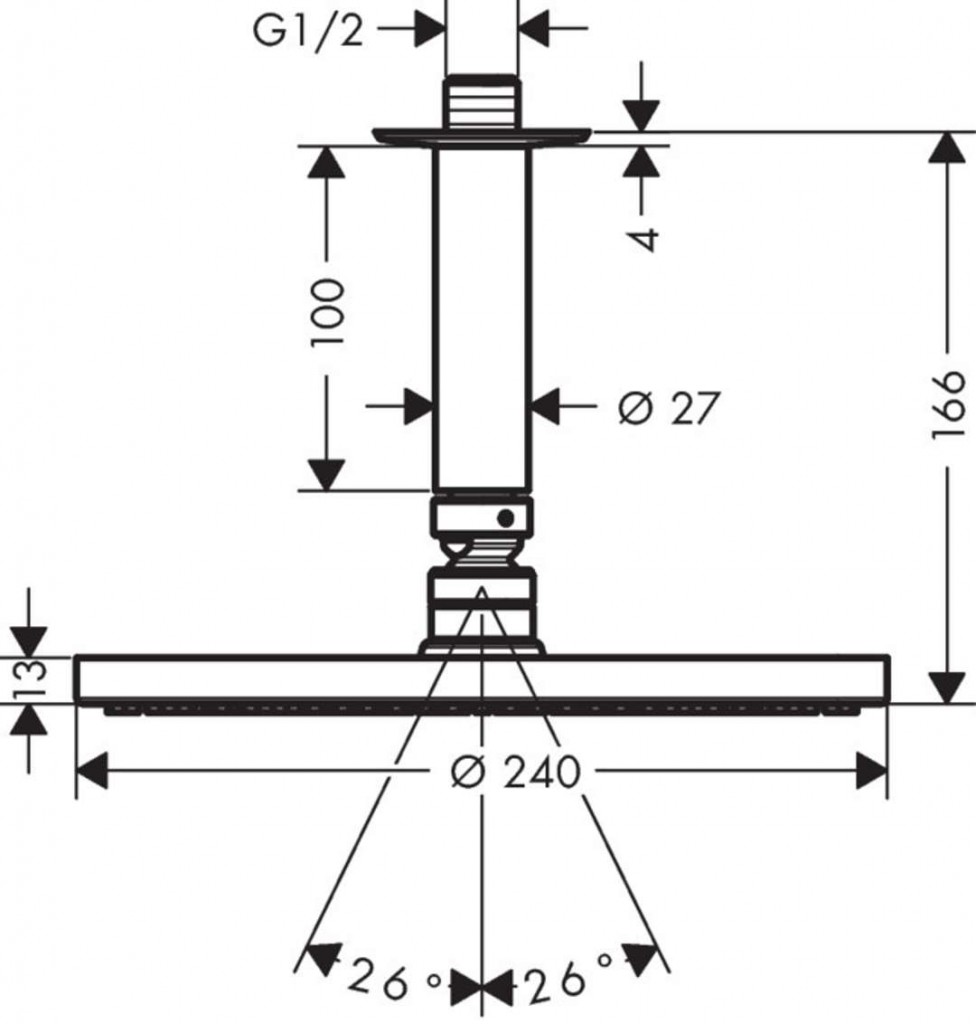 - guľový kĺb: nastaviteľný uhol horné sprchy