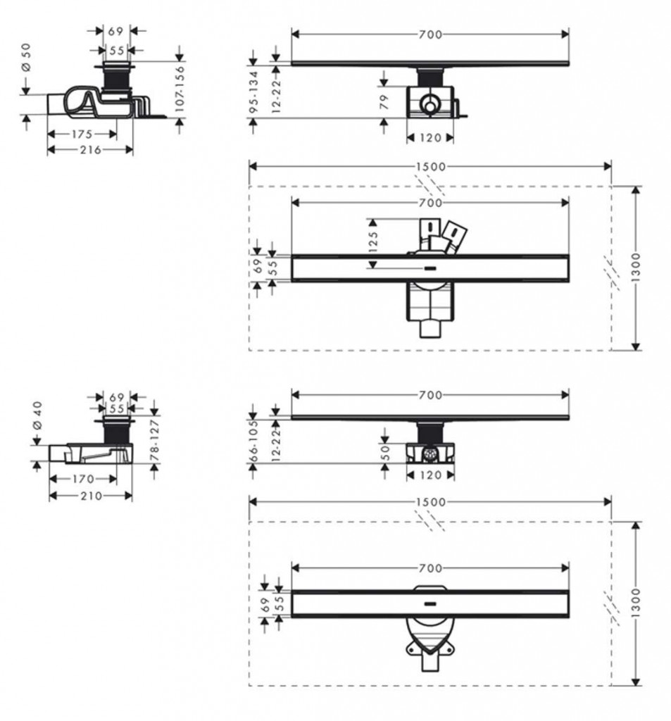 Úplná sada sprchového žľabu pre štandardnú/plochú inštaláciu