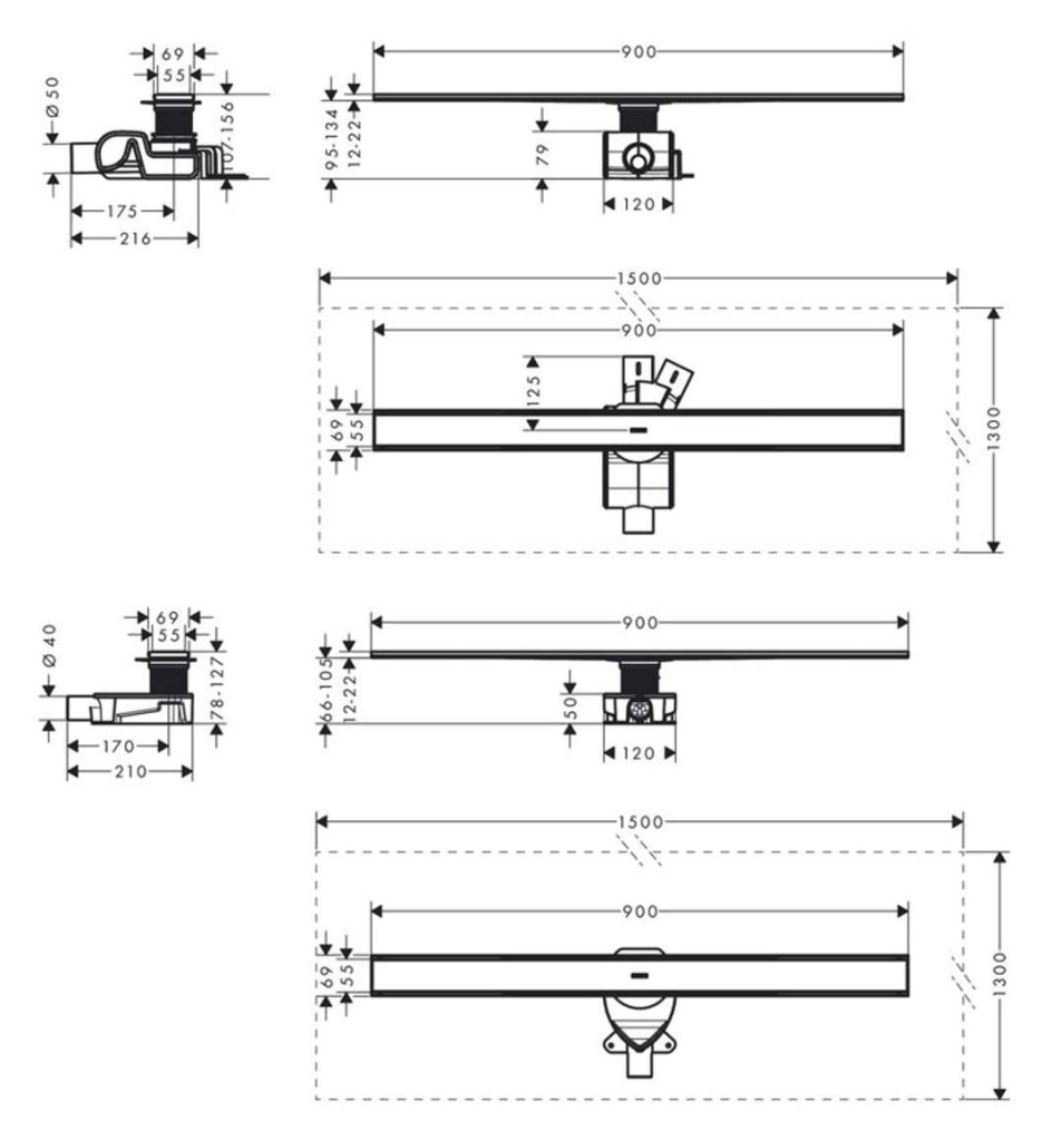 Úplná sada sprchového žľabu pre štandardnú/plochú inštaláciu