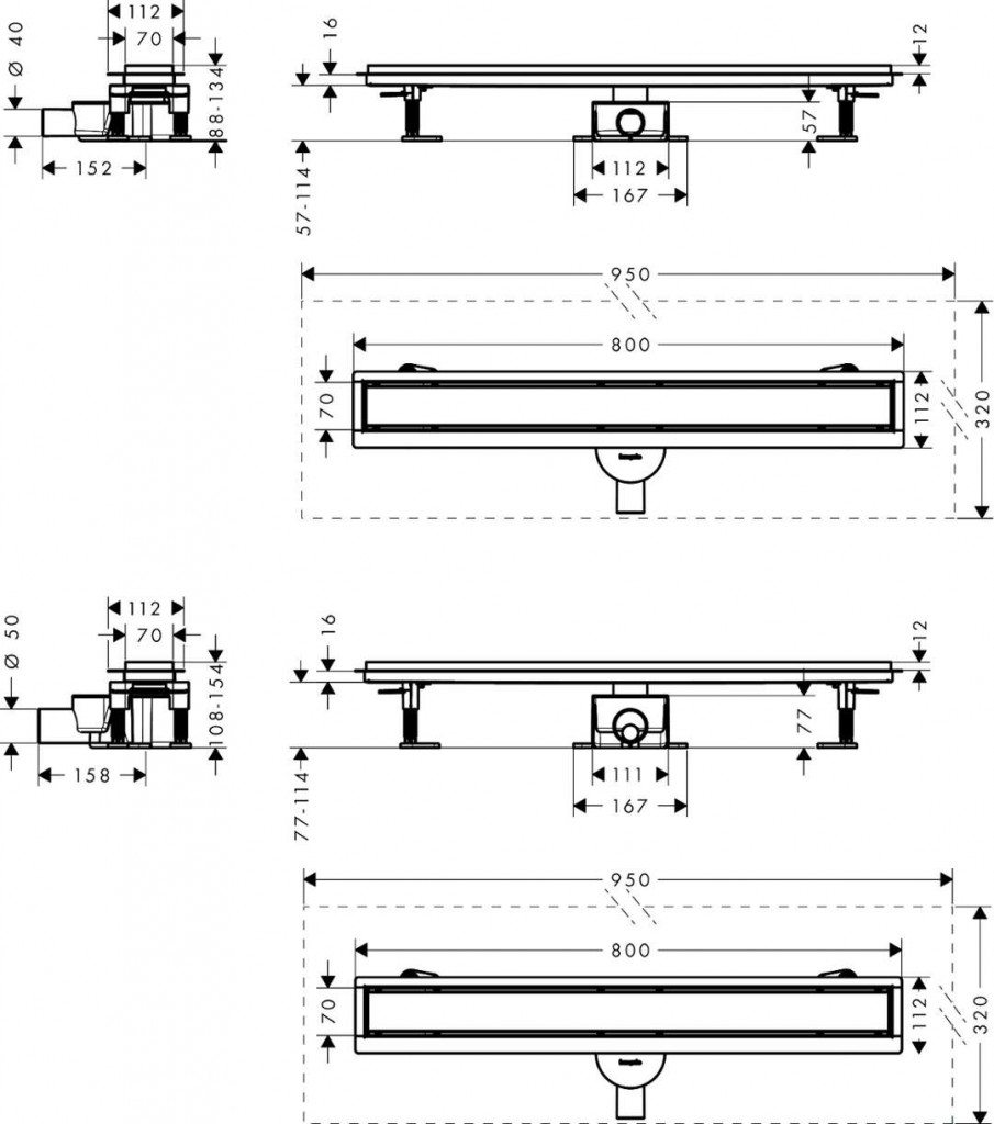 Úplná sada sprchového žľabu 800, pre štandardnú/plochú inštaláciu