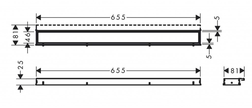 - inštalačný dĺžka: 655 mm