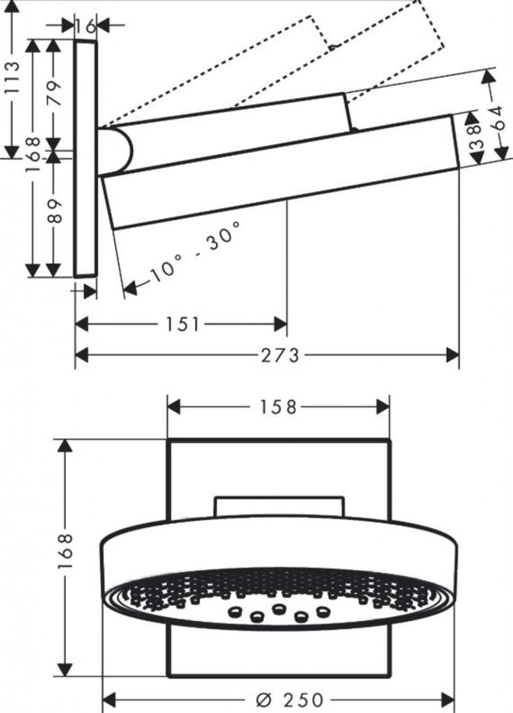 - hlavová sprcha vertikálne nastaviteľná v rozmedzí 10-30 °