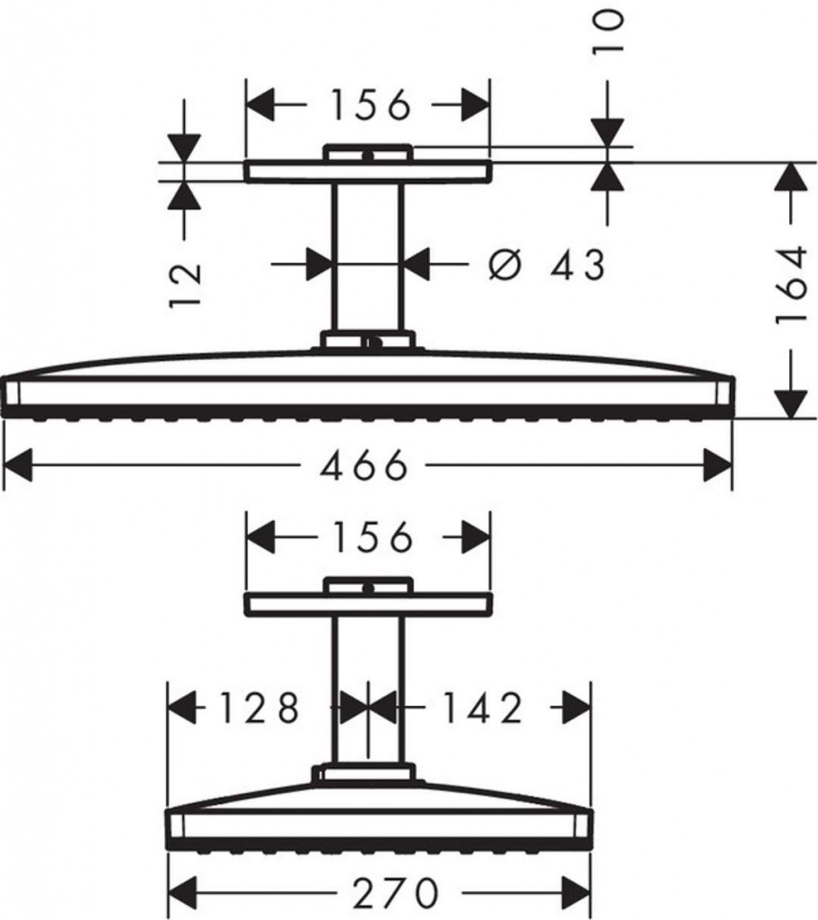 - veľkosť sprchovej hlavice: 460 x 270 mm