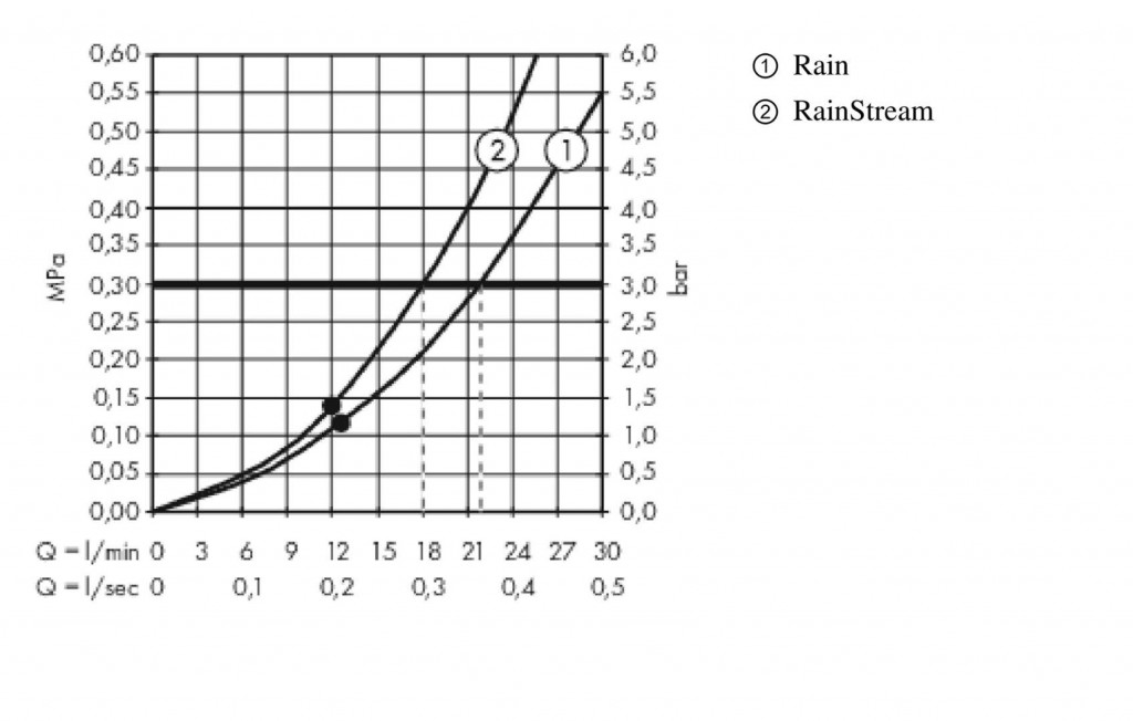 - prietokové množstvo prúdu RainStream (pri 0,3 MPa): 18 l / min