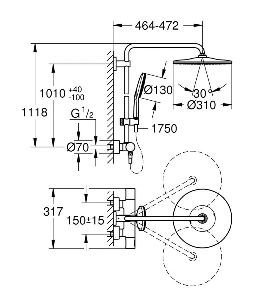 - GROHE Rain Štart v základnom nastavení vždy sprchovanie prúdom Rain