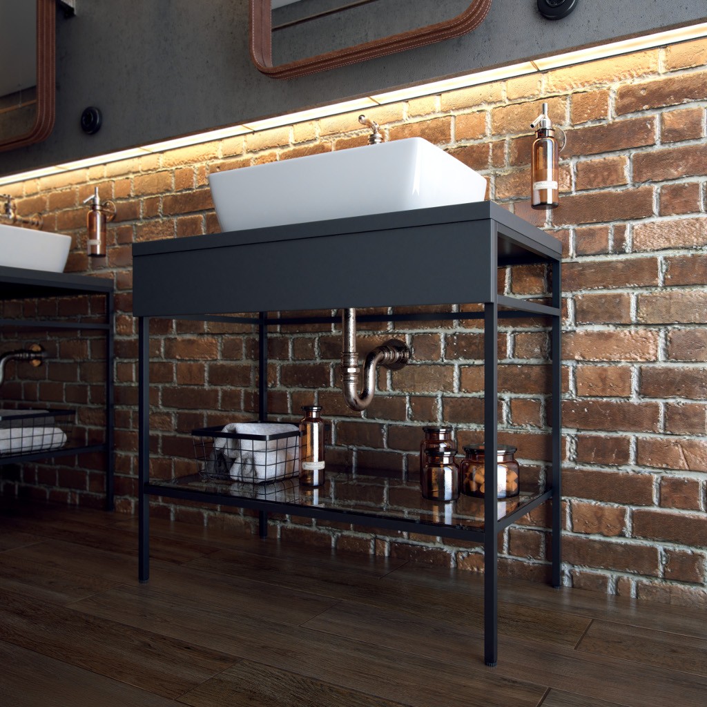 Rámová konstrukce v šedém provedení lze kombinovat s umyvadly na desku SPLENDOUR 50, 60 a SPLENDOUR oval 50.
