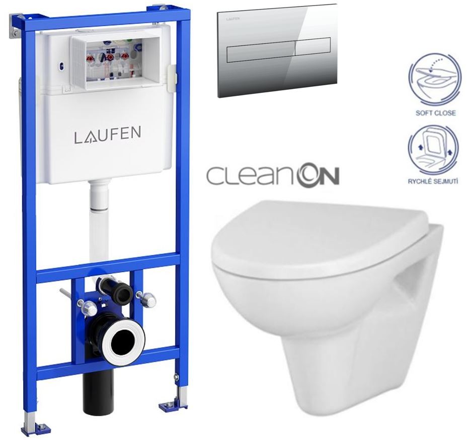 Závesná misa Parva Clean ON elegantného vzhľadu s horizontálnym odpadom. Funkcia splachovanie 2,5 / 5, 3 / 5l.