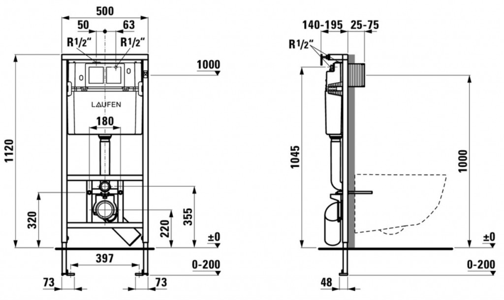 Rámový podomietkový modul CW1 do ľahkej priečky pre závesné WC