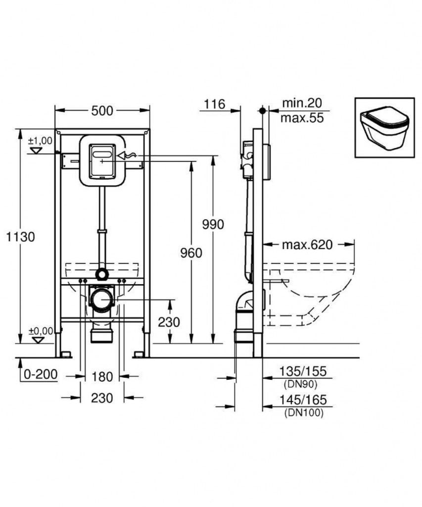 - pre predstenovú montáž alebo montáž do ľahkej priečky