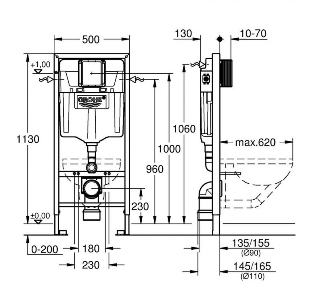 GROHE - Rapid SL Predstenový inštalačný set na závesné WC (38528001)