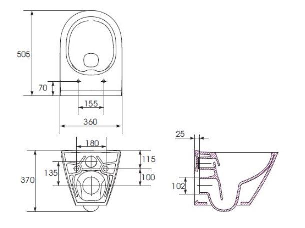 Závesná misa CITY oválna NEW CLEAN ON / bez oplachového kruhu / so zadným odtokom a funkcií splachovanie 2/4, 2,5 / 5 a 3 / 5l.