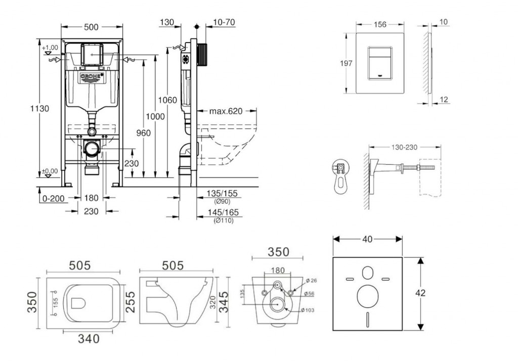 - predstenový inštalačný modul Grohe Rapid SL so splachovacou nádržkou pod omietku