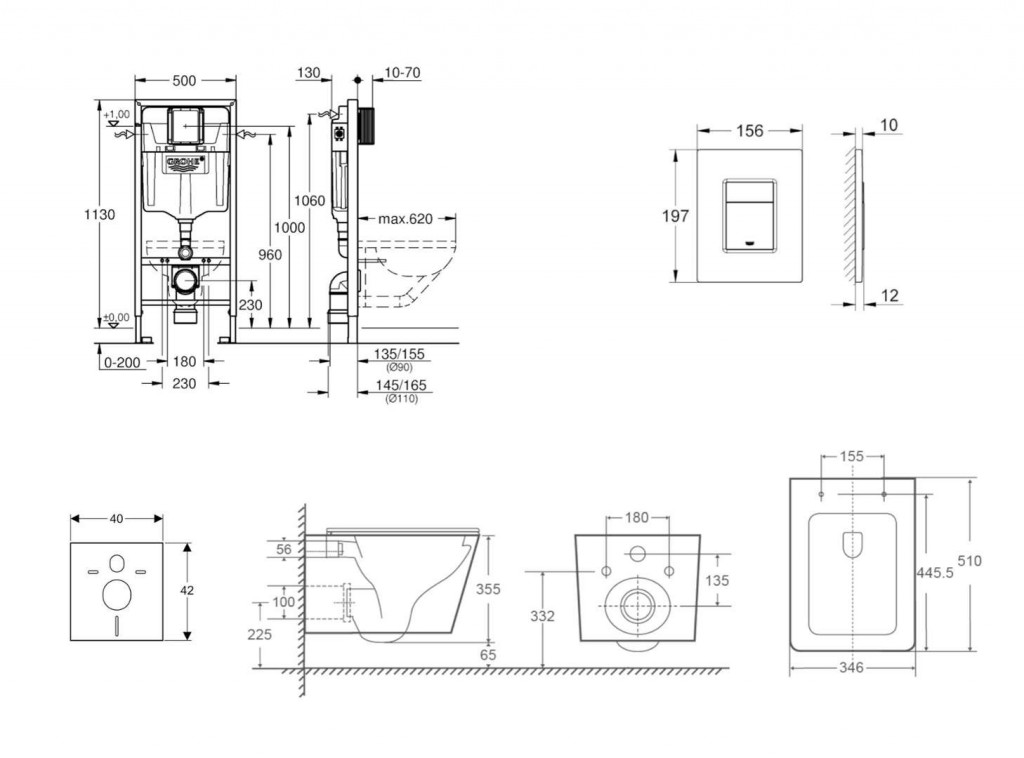 - predstenový inštalačný modul Grohe Rapid SL so splachovacou nádržkou pod omietku