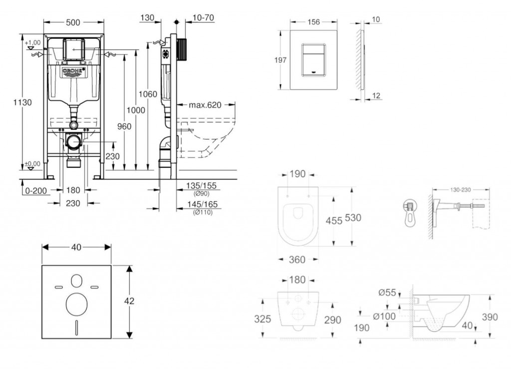 - predstenový inštalačný modul Grohe Rapid SL so splachovacou nádržkou pod omietku