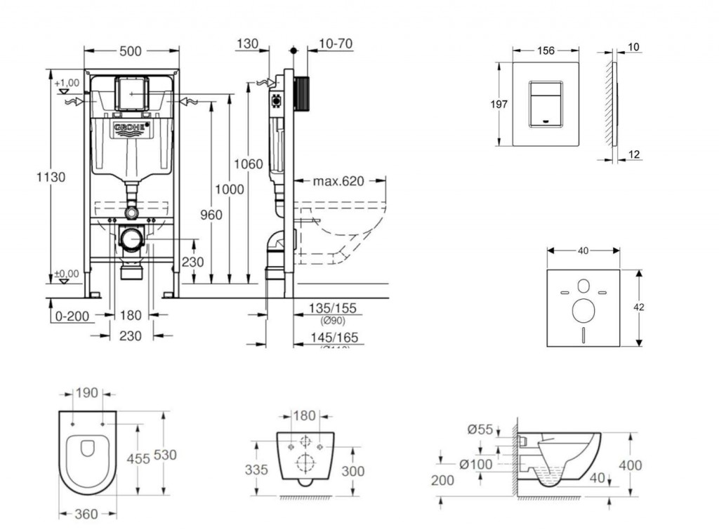 - predstenový inštalačný modul Grohe Rapid SL so splachovacou nádržkou pod omietku