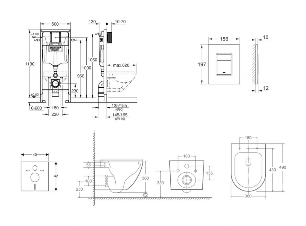 - predstenový inštalačný modul Grohe Rapid SL so splachovacou nádržkou pod omietku