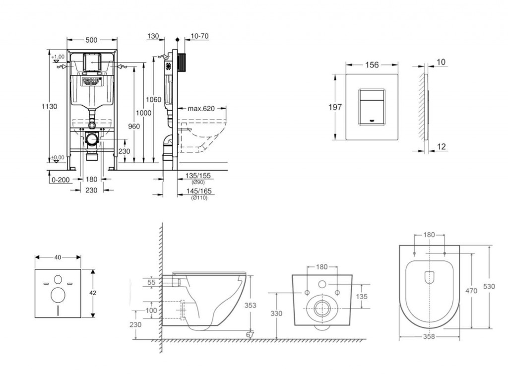 - predstenový inštalačný modul Grohe Rapid SL so splachovacou nádržkou pod omietku