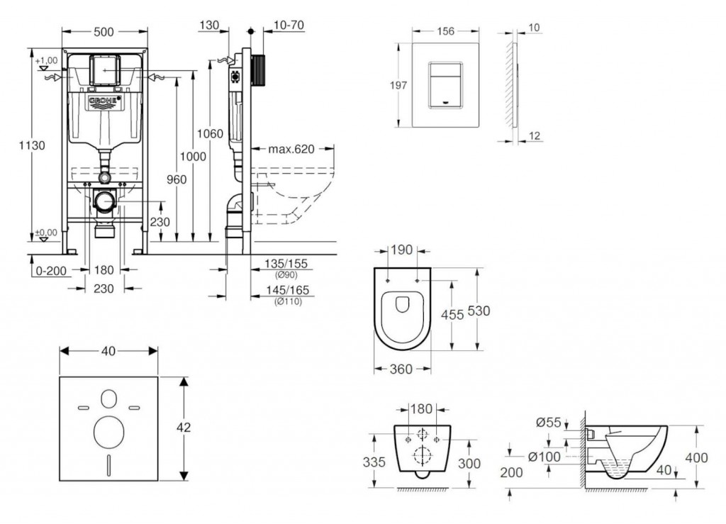 - predstenový inštalačný modul Grohe Rapid SL so splachovacou nádržkou pod omietku