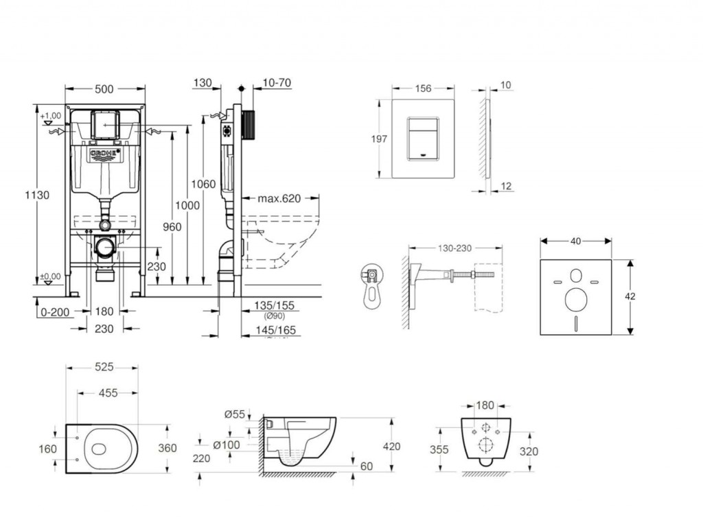 - predstenový inštalačný modul Grohe Rapid SL so splachovacou nádržkou pod omietku