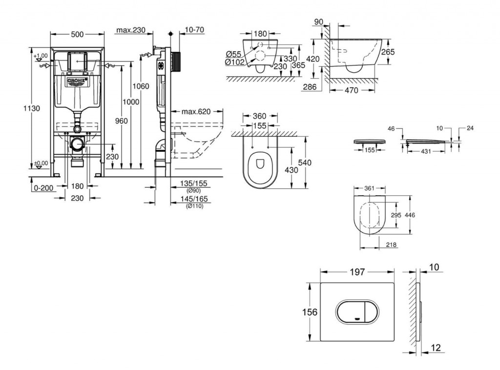 - WC keramika s plochou menšou ako 205 mm vyžaduje dodatočné príslušenstvo 38 779 000
