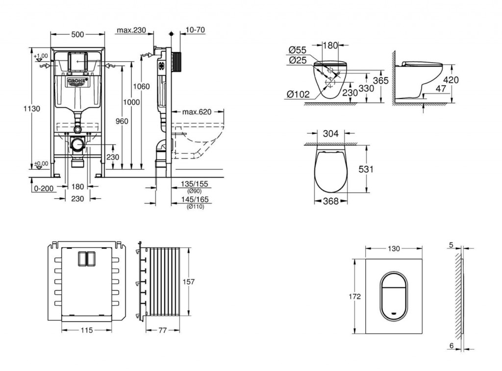 - WC keramika s plochou menšou ako 205 mm vyžaduje dodatočné príslušenstvo 38 779 000