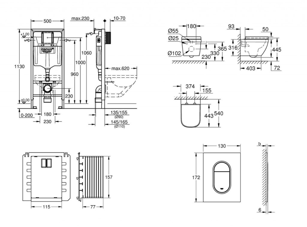 - WC keramika s plochou menšou ako 205 mm vyžaduje dodatočné príslušenstvo 38 779 000