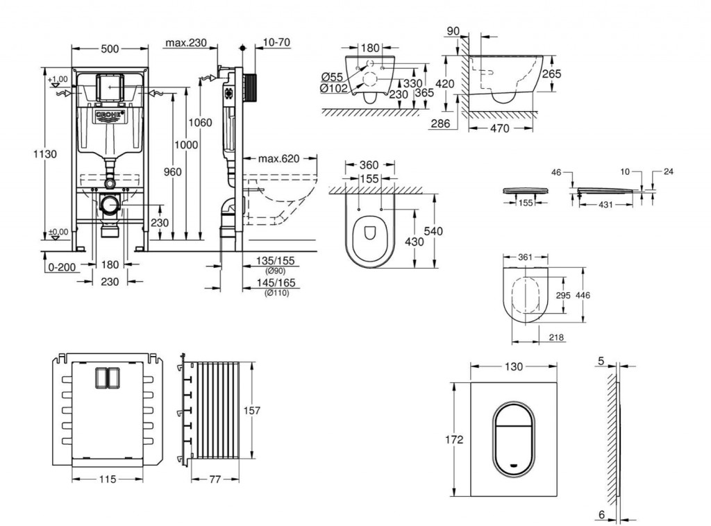 - WC keramika s plochou menšou ako 205 mm vyžaduje dodatočné príslušenstvo 38 779 000