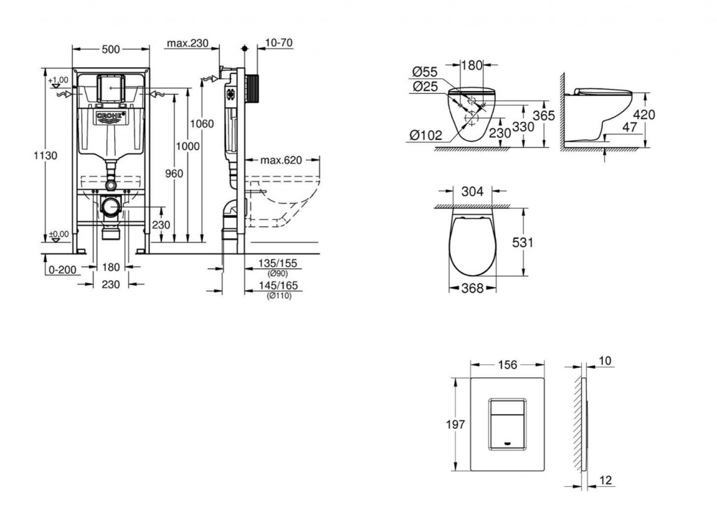 - WC keramika s plochou menšou ako 205 mm vyžaduje dodatočné príslušenstvo 38 779 000