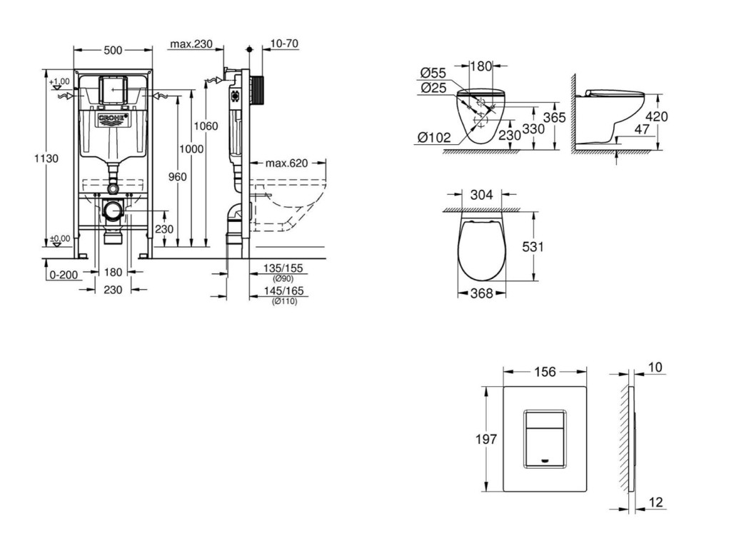 - WC keramika s plochou menšou ako 205 mm vyžaduje dodatočné príslušenstvo 38 779 000