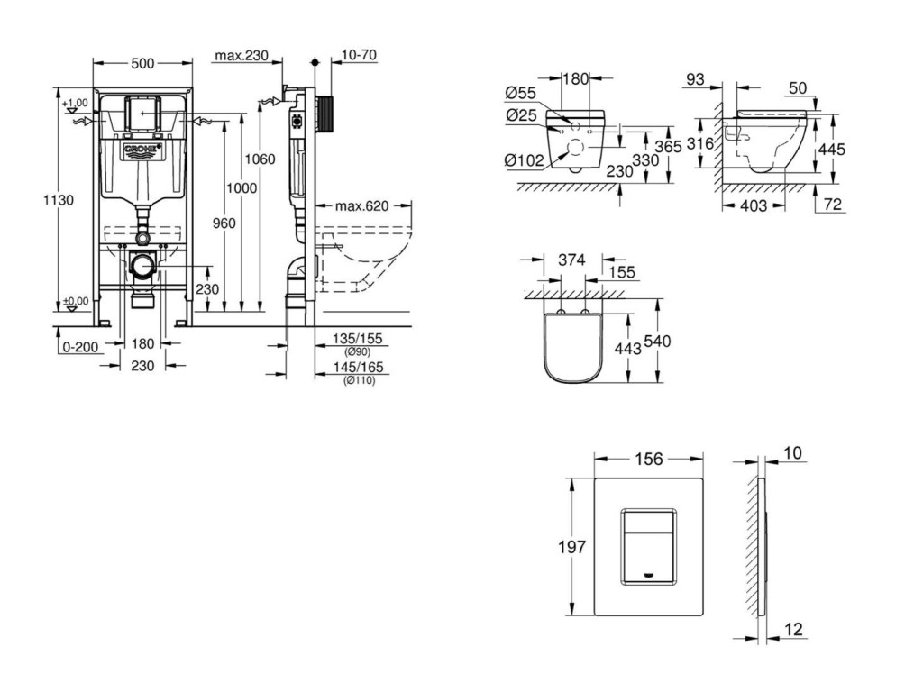 - WC keramika s plochou menšou ako 205 mm vyžaduje dodatočné príslušenstvo 38 779 000