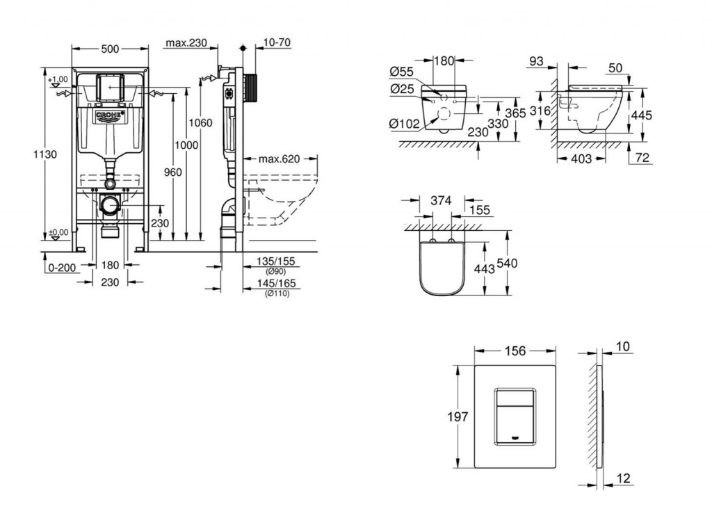 - WC keramika s plochou menšou ako 205 mm vyžaduje dodatočné príslušenstvo 38 779 000
