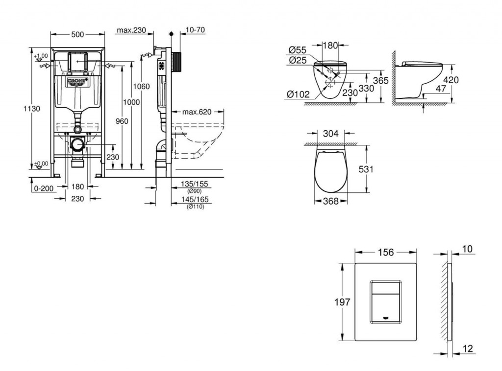 - WC keramika s plochou menšou ako 205 mm vyžaduje dodatočné príslušenstvo 38 779 000
