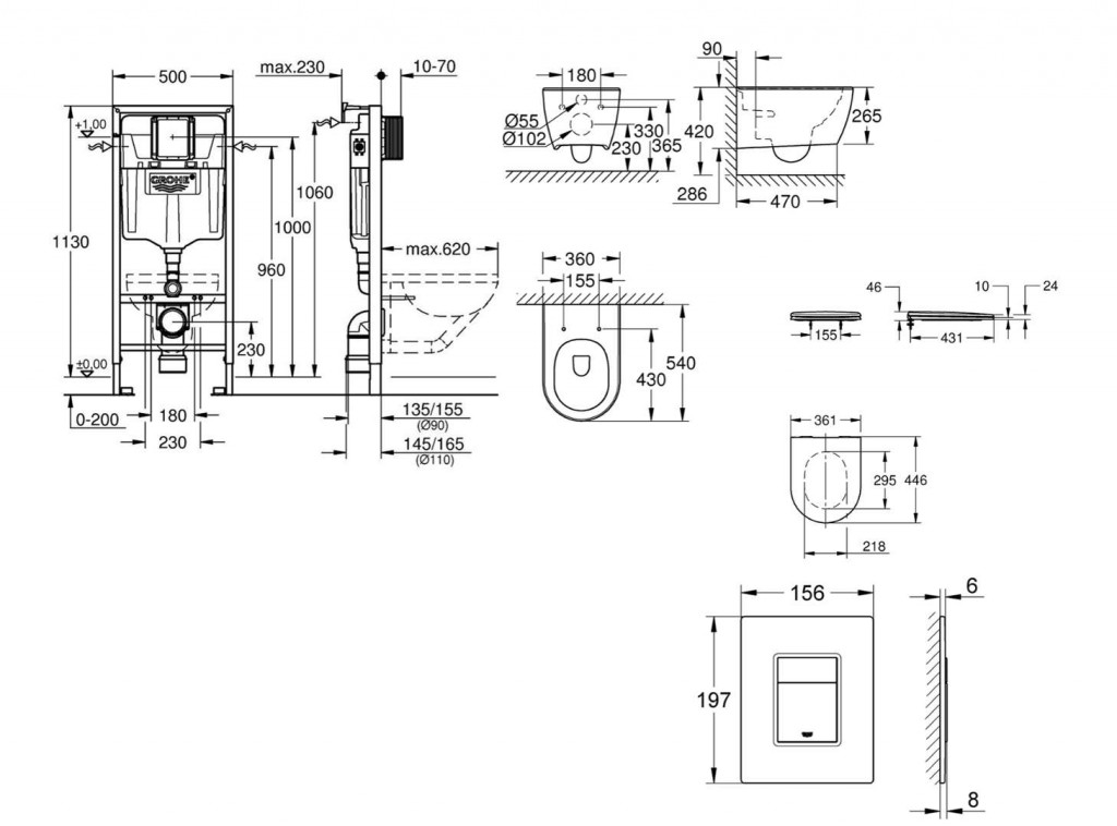 - WC keramika s plochou menšou ako 205 mm vyžaduje dodatočné príslušenstvo 38 779 000