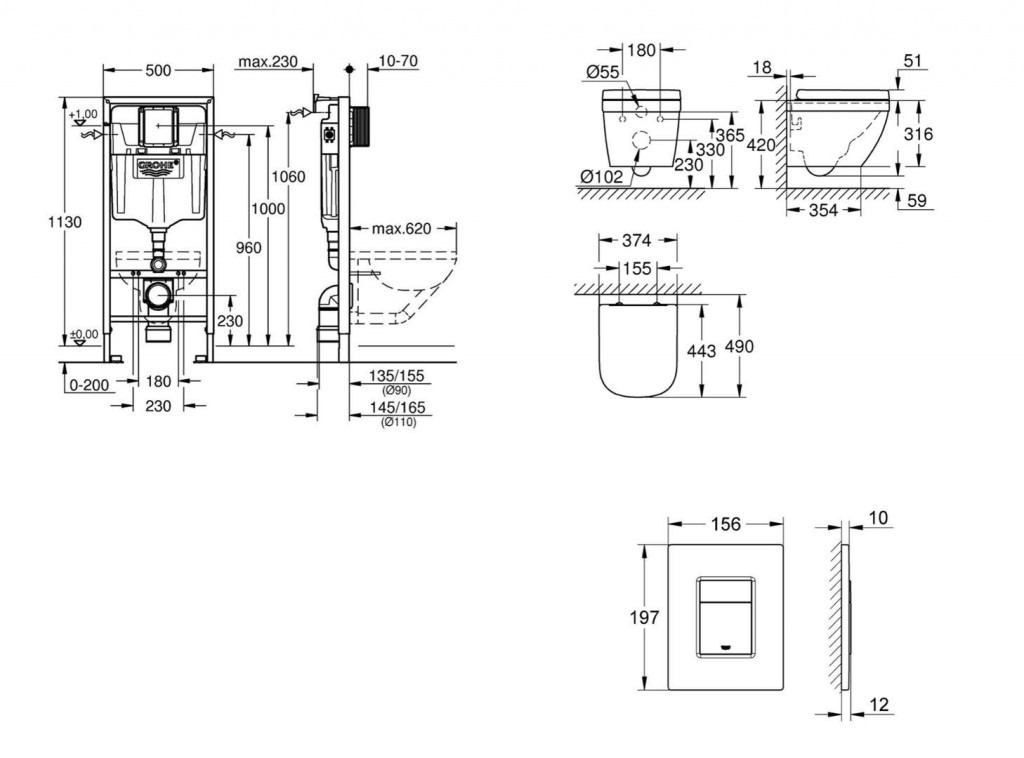 - WC keramika s plochou menšou ako 205 mm vyžaduje dodatočné príslušenstvo 38 779 000