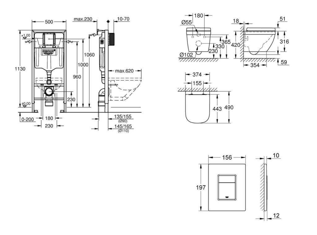 - WC keramika s plochou menšou ako 205 mm vyžaduje dodatočné príslušenstvo 38 779 000