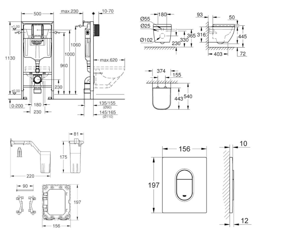 - pre všetky splachovacie tlačidlá GROHE s rozmermi 156 x 197 mm