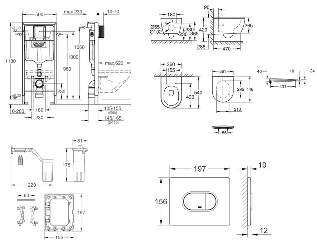 - pre všetky splachovacie tlačidlá GROHE s rozmermi 156 x 197 mm