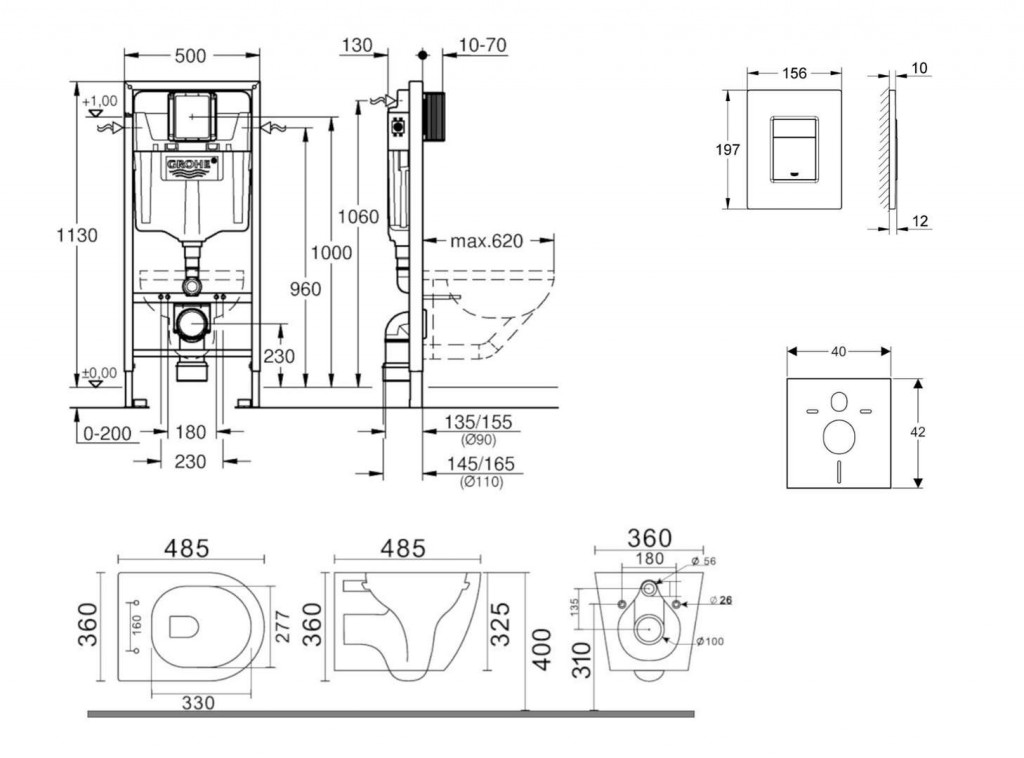 - predstenový inštalačný modul Grohe Rapid SL so splachovacou nádržkou pod omietku