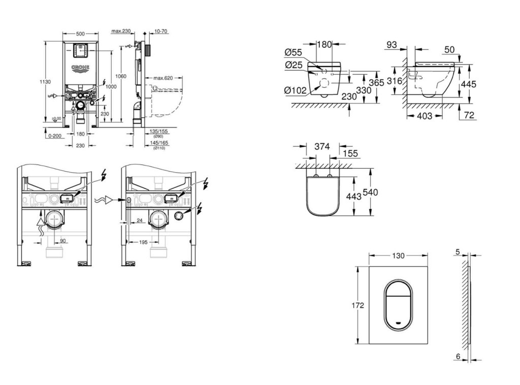 - integrovaný regulátor prietoku - modul je tak možné využiť s toaletami s bezokrajovým splachovaním
