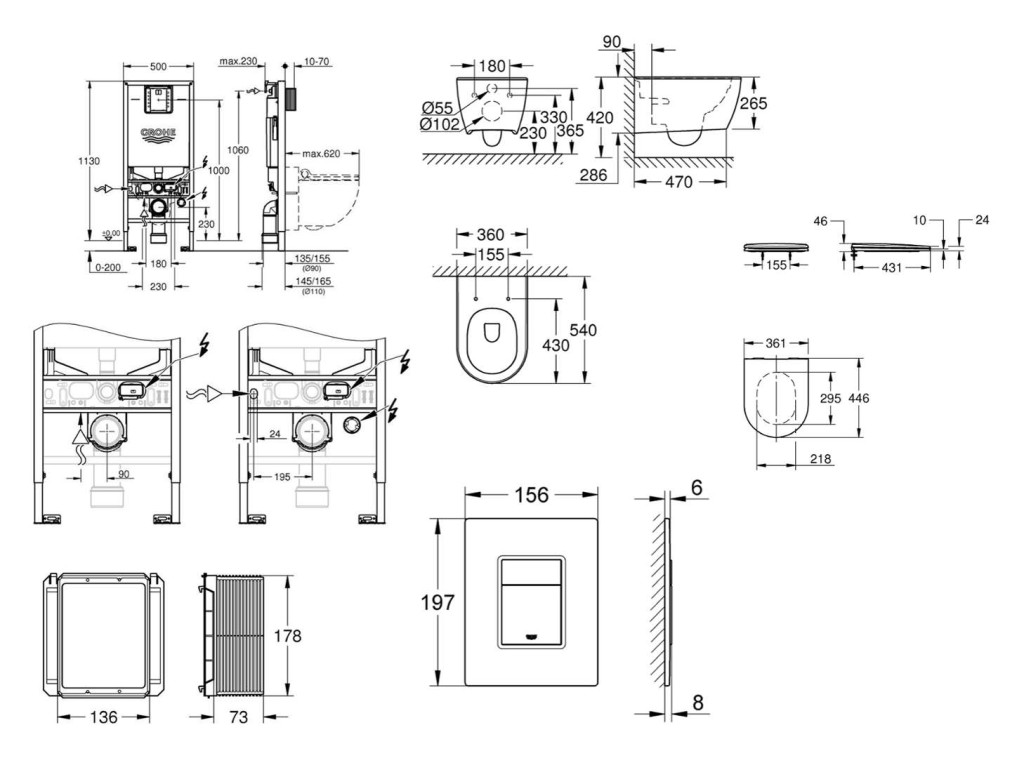 - integrovaný regulátor prietoku - modul je tak možné využiť s toaletami s bezokrajovým splachovaním