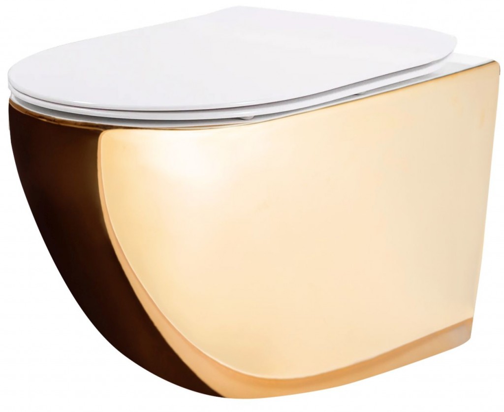 Čo tak si zaobstarať zlatý záchod? Žiadny problém. Závesná WC misa Rimless Carlo Flat je skvelá voľba. Základom je biela keramika, ktorá je z vonkajšej strany pokrytá zlatou farbou. A výnimočný kúsok je na svete. Elegantný zlatý dizajn podporený bielym duroplastovým sedadlom sa stane luxusným prvkom celej toalety.
