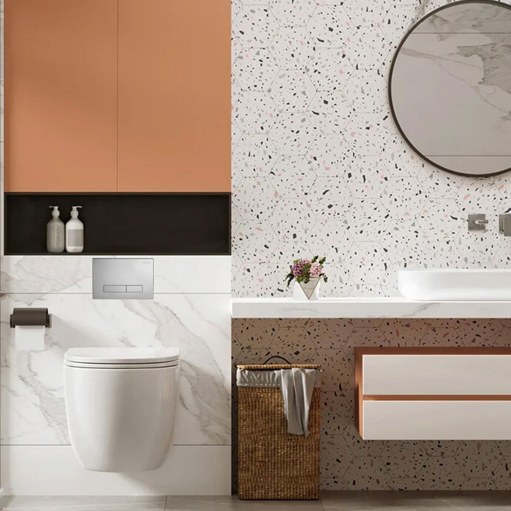 Predstavujeme vám elegantné a extrémne funkčné tlačidlo vzoru "H" pre podomietkový rám toalety výrobcu REA. Ide o produkt, ktorý dokonale vyplní priestor vašej kúpeľne pri zachovaní dokonalého vzhľadu a estetiky interiéru. Toto tlačidlo je dostupné vo farbách: čierna, zlatá, chróm a titán.