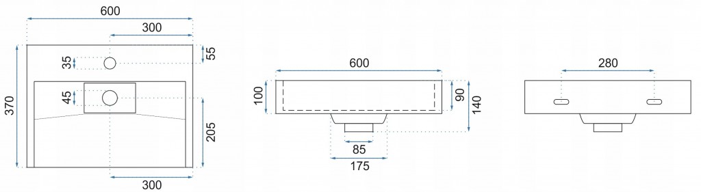 Umývadlo má odpadovú časť, ktorá pokračuje pod dosku. Je preto potrebné pre ňu pripraviť dopredu otvor s rozmerom 17,5 cm.